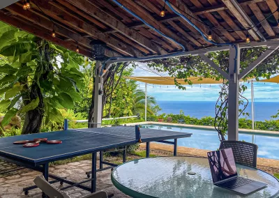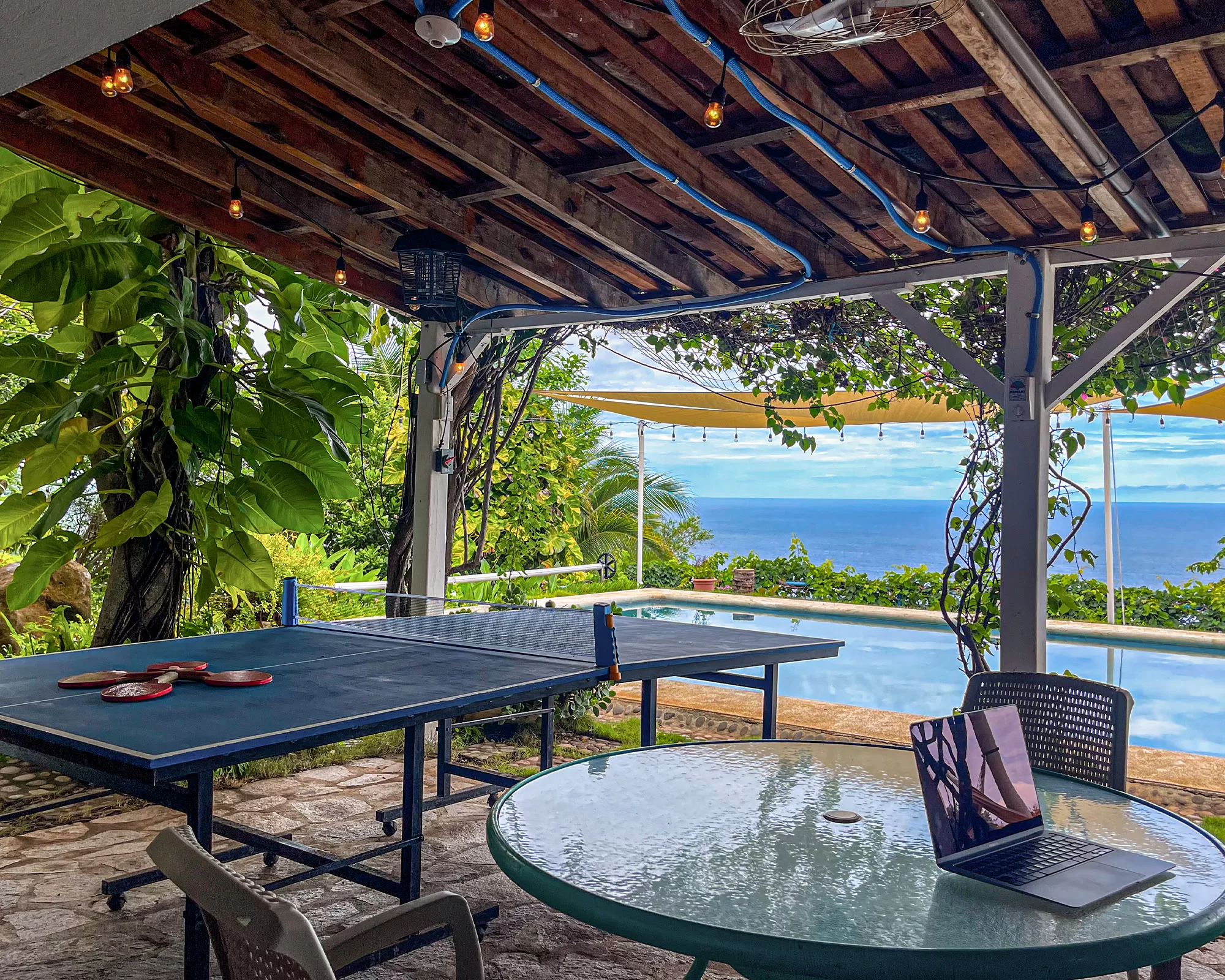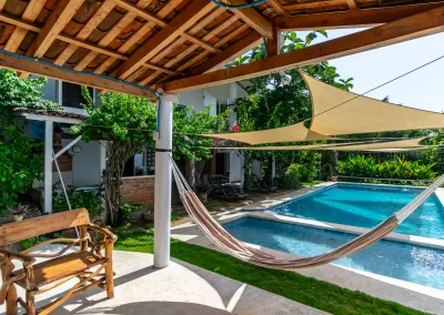 Los mejores días de sol y mar y las mejores noches compartiendo con familia y amigos bajo las estrellas, se viven en Arrecife del Pacífico. Esta casa de mar, está en Bahía Dorada, una residencial privada incrustada en un acantilado frente al océano Pacífico en Teotepeque, La Libertad. Esta casa de ensueño, con capacidad para 5 personas, tiene un espacio abierto, con piscina y glorieta con hamacas, desde donde las vistas son infinitas La playa privada, está a 10 minutos en carro desde la casa.