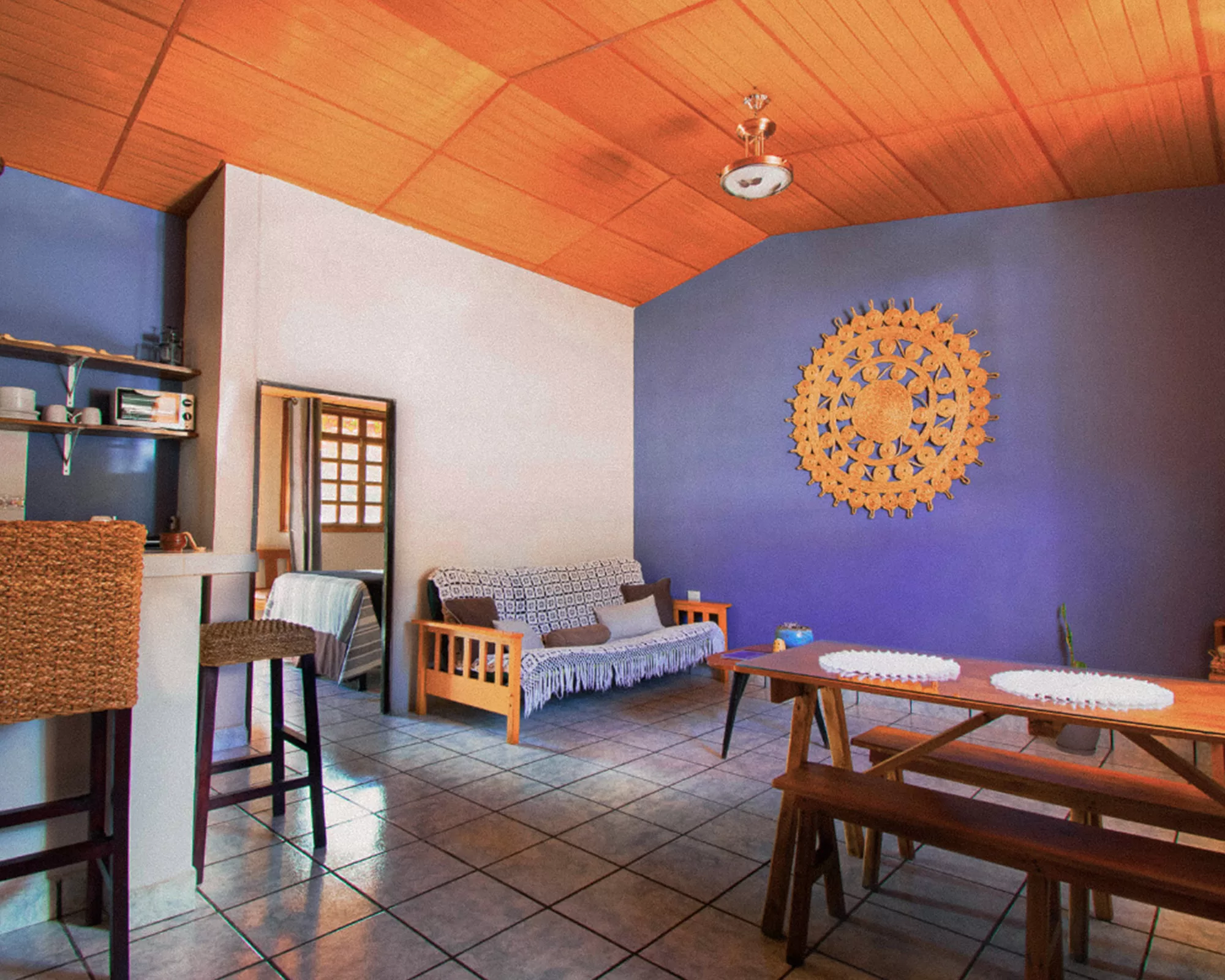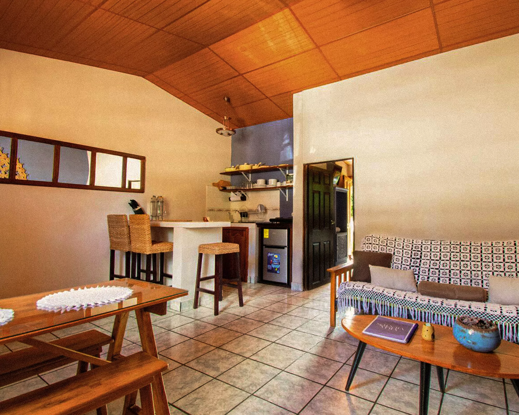 Villa de Vientos es un encantador alojamiento de tres apartamentos en Apaneca, el pueblo de montaña más alto del país. Con 1,455 m.s.n.m. y rodeada de cafetales, Apaneca goza de clima fresco todo el año. El Apartamento 2, equipado al detalle, hospeda a cuatro personas quienes podrán relajarse en el exuberante patio interior después de descubrir el tranquilo pueblo a pie. Basta caminar dos cuadras para llegar a la plaza turística, al parque central y a la icónica Iglesia de San Andrés Apóstol.